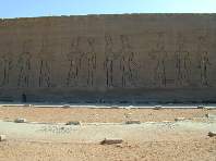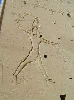 Meine Reisekumpanen nutzen die Zeit um einen Geldausgabeautomaten zu suchen - wir brauchen ja wieder Geld. Der ist leider außer Betrieb, aber es geht ja auch altmodisch - in der Bank. Danach fahren sie nach Edfu, das ca. 100 km südlich von Luxor liegt. Hier fand zu pharaonischer Zeit - damals hieß die Stadt noch Tbot, der falkengeschtige Gott Horus besondere Verehrung. Interessant ist, dass hier schon im Mittelalter Zuckerrohr angebaut und exportiert wurde und dass sich das Wort "Zucker" vom arabischen "sukkar" ableitet. Wichtiger ist aber, dass hier der Horus-Tempel, der in der Zeit von 237 - 257 vor Christus errichtet wurde, befindet. |